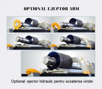 Inel de inchidere actionat hidraulic pentru usurarea evacuarii virolelor realizate. Cadrul masinii din constructie sudata in forma piramidala confera o rigiditate ridicata, avand materialul tratat prin revenire.