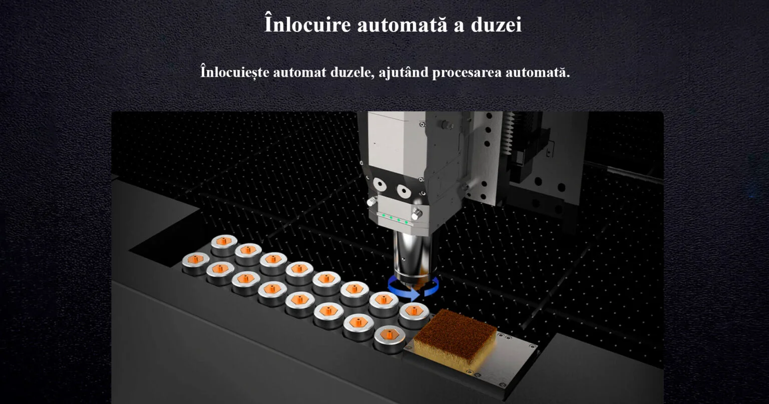 Software-ul ajustează automat lentila de focalizare pentru a realiza perforare și tăiere de diferite grosimi. Viteza de reglare automată a obiectivului de focalizare este de zece ori mai mare decât cea de reglare manuală.